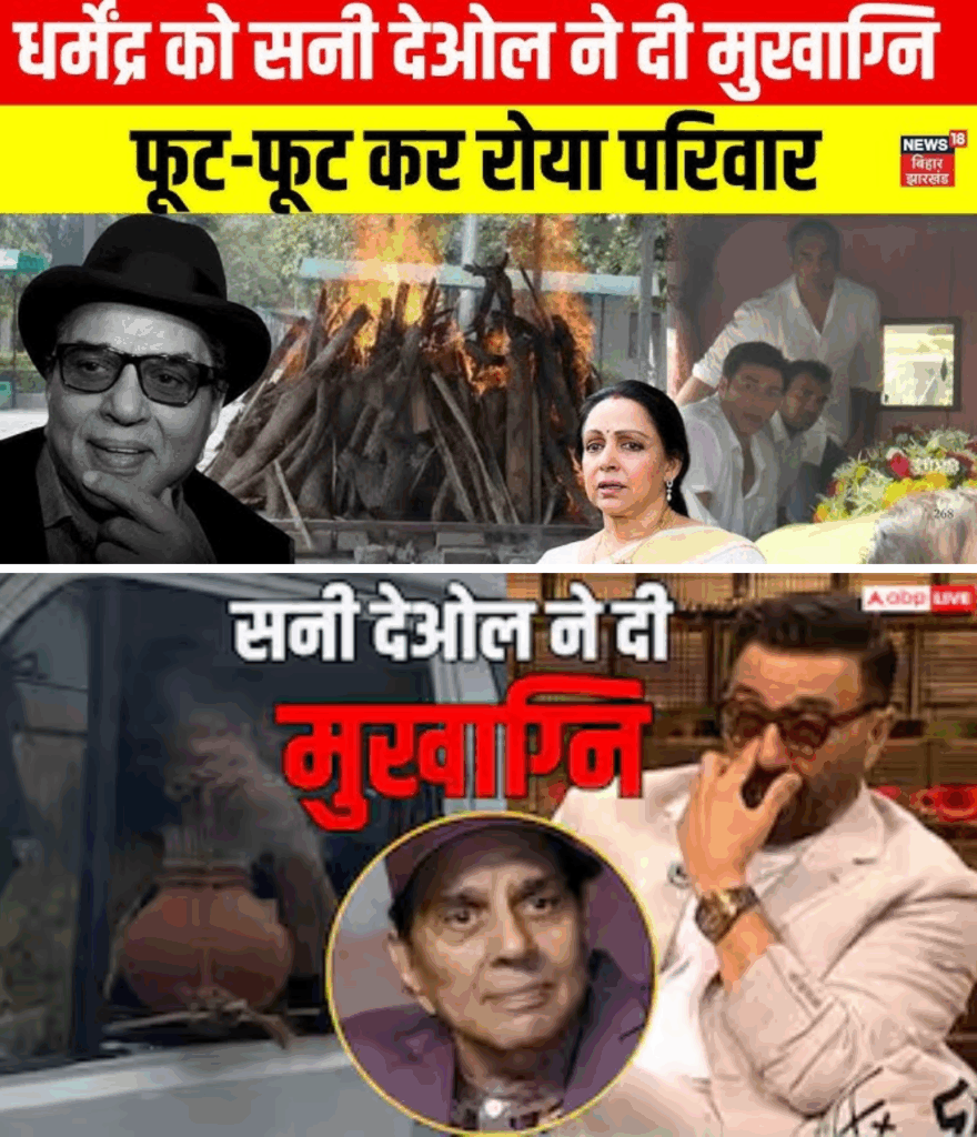 Bollywood icon Dharmendra has merged with the five elements, marking the end of an era in Indian cinema. His passing has sent waves of grief throughout the industry and the entire nation. The last rites were performed by his eldest son, Sunny Deol, who lit the funeral pyre in a simple ceremony attended by close family members and industry stalwarts.