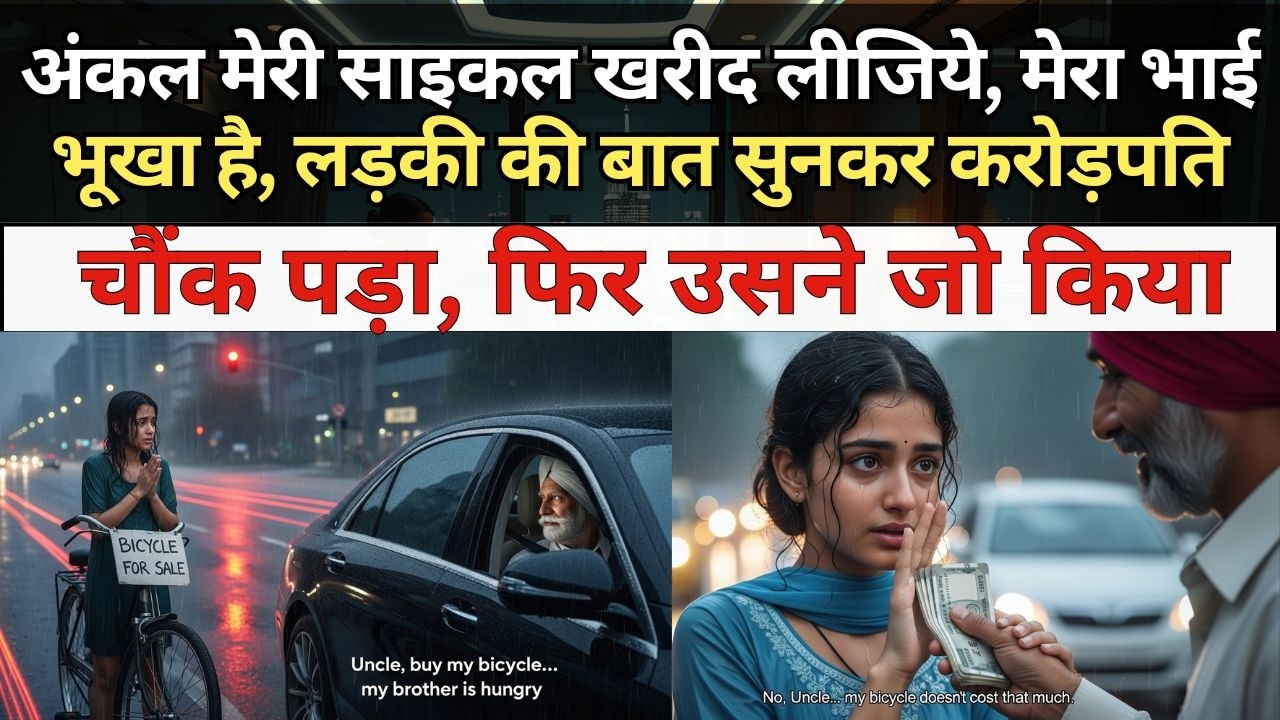 अंकल मेरी साइकल खरीद लीजिये , मेरा भाई भूखा है , लड़की की बात सुनकर करोड़पति चौंक पड़ा , फिर उसने