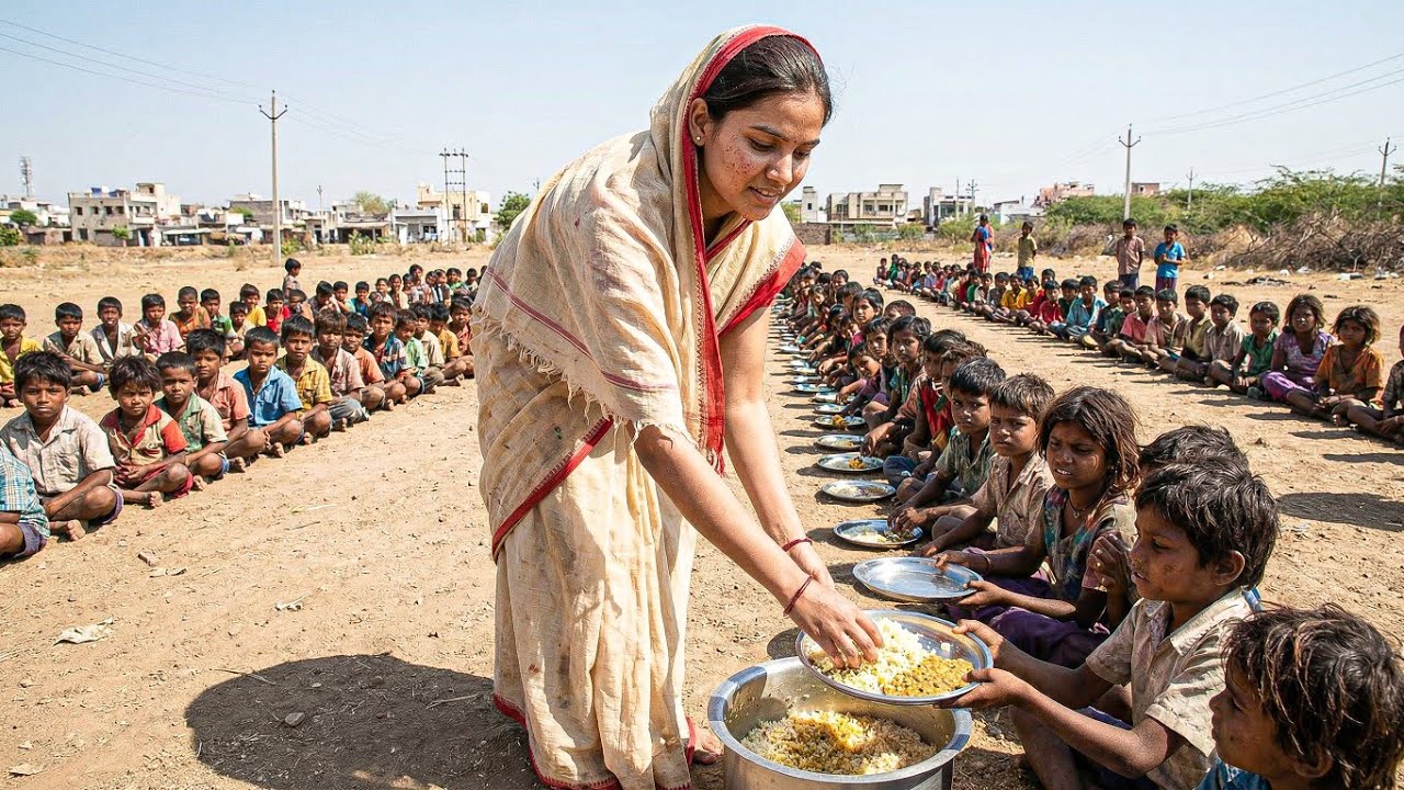 सुधा एक पुराने पुल के नीचे गई, जहां टूटी-फूटी टाट पट्टियों पर 101 बच्चे और कुछ बुजुर्ग लेटे थे। सुधा को देखते ही बच्चे “माँ-माँ” चिल्लाते हुए दौड़ पड़े। सुधा ने टिफिन खोला, उसमें बची हुई रोटियां, दाल और फल थे—वही खाना, जो अमीर घरों में डस्टबिन में चला जाता। बच्चों के लिए वह किसी शाही दावत से कम नहीं था। सुधा खुद एक निवाला भी नहीं खा रही थी, बस बच्चों को खिलाते हुए देख रही थी।