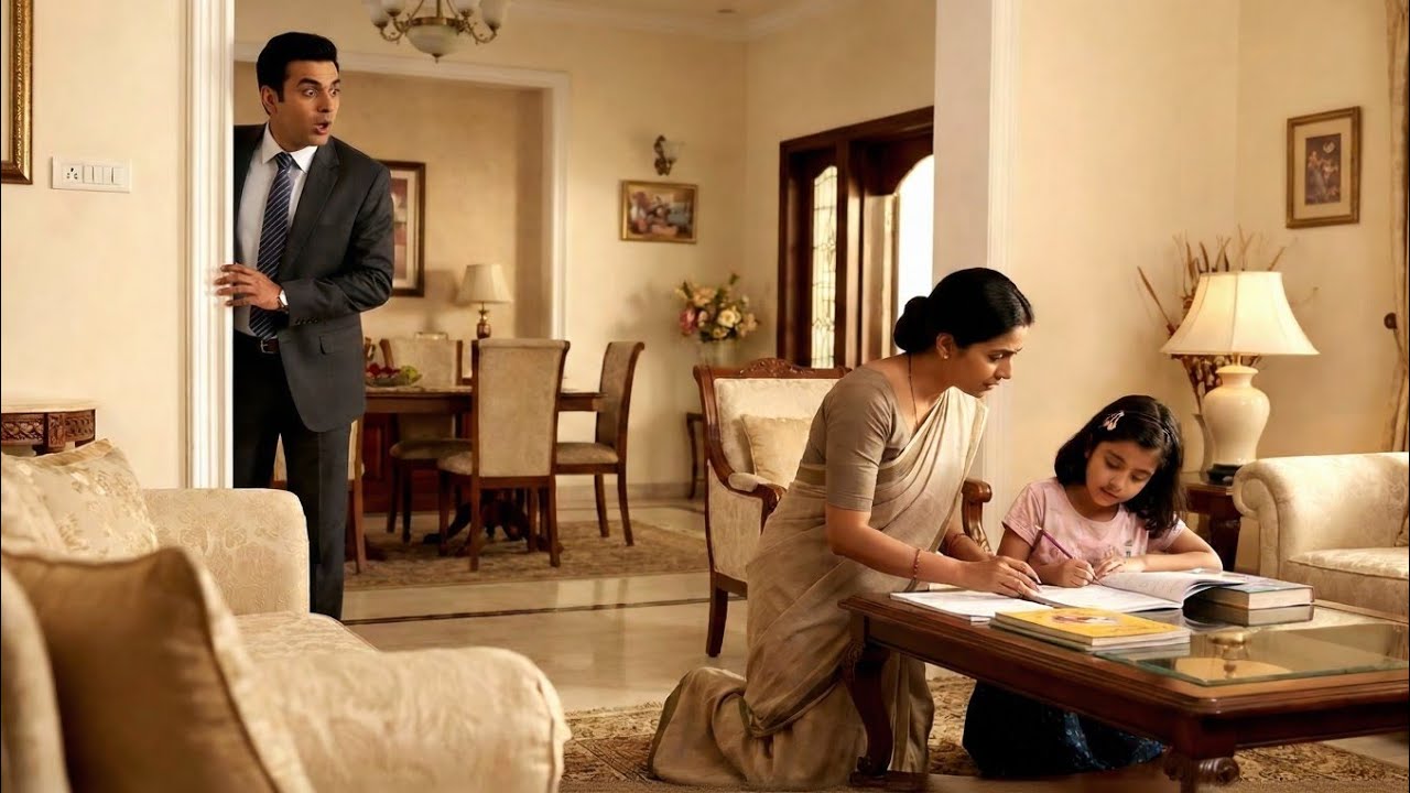 एक दिन वही हुआ जिसका डर था। राजेश्वर प्रताप की मीटिंग अचानक रद्द हो गई, और वे शाम को ही घर लौट आए। जब वे परी के कमरे में पहुंचे, तो देखा—परी जमीन पर बैठी थी, सिर काव्या की गोद में था, चारों तरफ किताबें बिखरी थीं। काव्या बहुत प्यार से परी को पढ़ा रही थी। परी के चेहरे पर सुकून और खुशी थी।