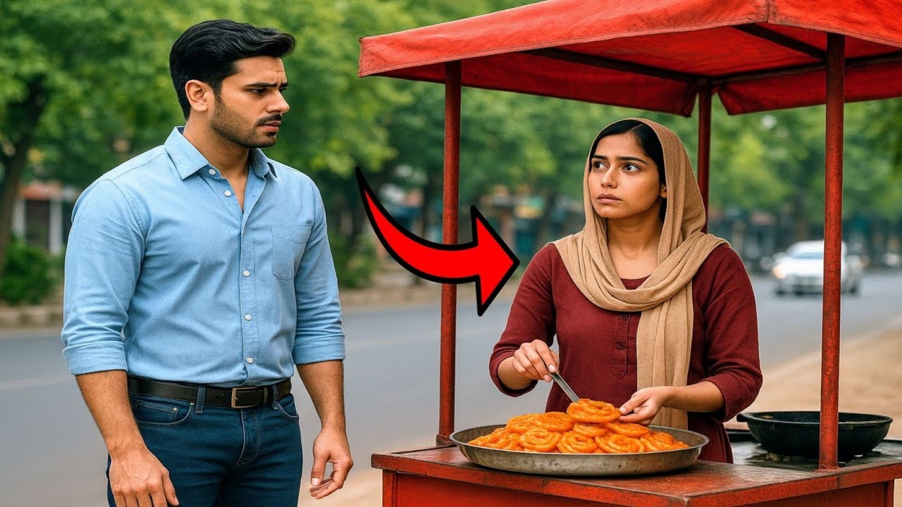 रवि ने गाड़ी रोकी, स्टूल पर बैठ गया और मुस्कुराकर बोला, “मैडम, एक प्लेट जलेबी बना दीजिए, जल्दी।” लड़की ने सिर हिलाया, गरमा गरम जलेबी को चाशनी में डुबोते हुए प्लेट में सजाने लगी। रवि उसकी सादगी में खो गया। जैसे ही उसकी नजर लड़की के चेहरे पर पड़ी, उसका दिल धक से रह गया। वो चेहरा… वही चेहरा जिसने कॉलेज के दिनों में उसकी हर सुबह को रंगीन बना दिया था। रवि की सांसें थम सी गईं। कॉलेज की कैंटीन, उसकी हंसी, उसकी बातें – सब यादें तैरने लगीं।