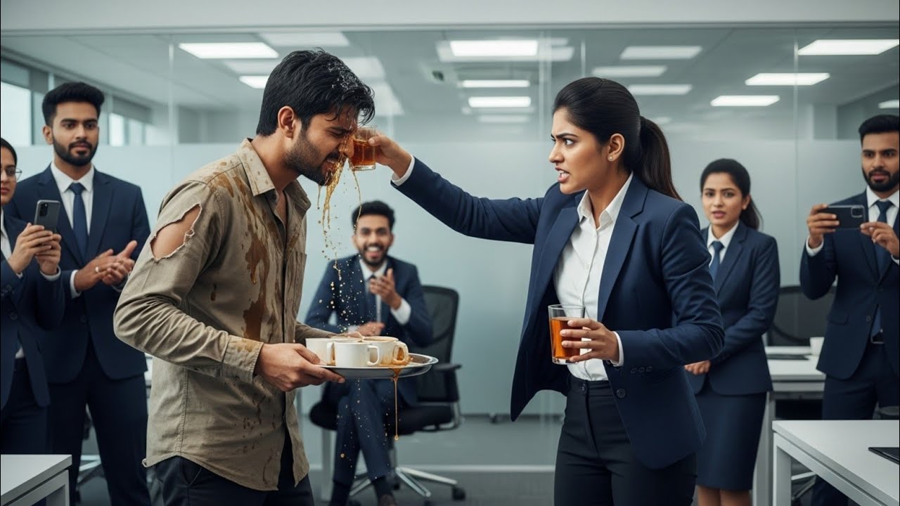 तभी कंपनी की असिस्टेंट मैनेजर प्रिया आगे आई। उसके कपड़े चमकदार, हाथ में महंगा फोन और चेहरे पर घमंड। उसने चाय वाले को ऊपर से नीचे तक घूरा और बोली, “क्या हालत बना रखी है? फटे कपड़े पहनकर यहां आया है? यह चाय की दुकान है? निकल ले यहां से।”
