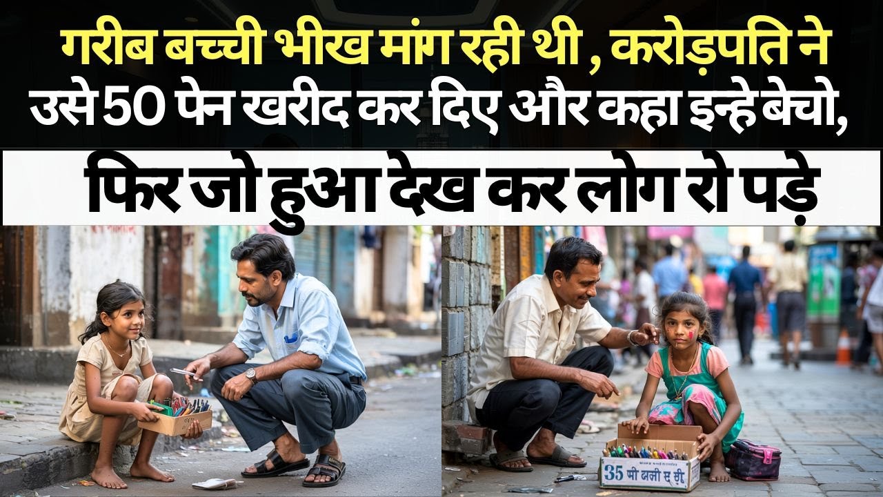 गरीब बच्ची भीख मांग रही थी , करोड़पति ने उसे 50 पेन खरीद कर दिए और कहा इन्हे बेचो , फिर जो हुआ देख