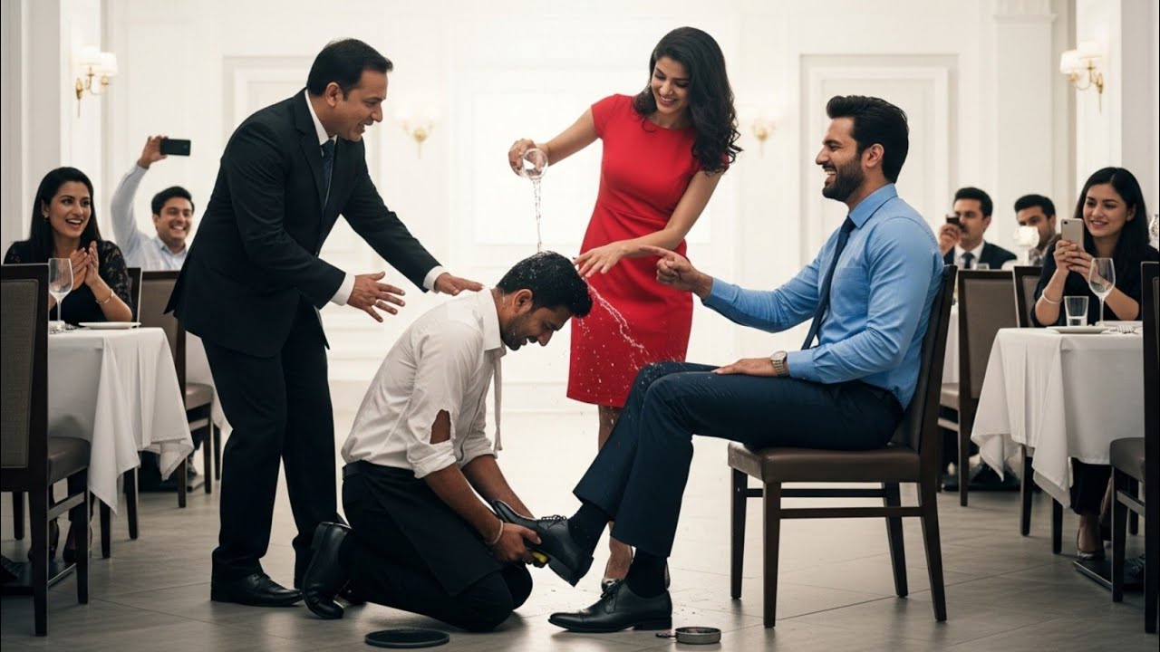 कुछ दिनों बाद, सबसे बड़ा अपमान तब हुआ जब रिया अपने नए प्रेमी समीर के साथ रेस्टोरेंट आई। समीर ने जानबूझकर अपने जूते पर सॉस गिरा दिया और आर्यन से बोला, “अब इसे साफ कर, यही तो तेरा काम है!”