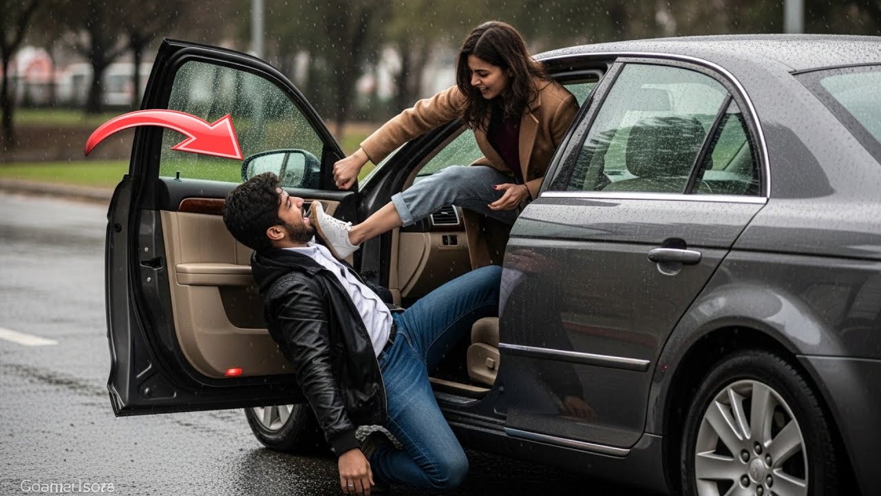 राजवीर ने सड़क पर गुजरने वाली गाड़ियों की तरफ इशारा करके लिफ्ट मांगने की कोशिश की, लेकिन बारिश की वजह से कोई रुकने को तैयार नहीं था। तभी एक चमकदार लाल Honda City आई और राजवीर के पास रुक गई। खिड़की नीचे हुई और एक 24 साल की लड़की का चेहरा दिखा—खुशबू पांडे। उसने महंगा सूट पहना था, गले में सोने की चैन थी और चेहरे पर घमंड झलक रहा था।