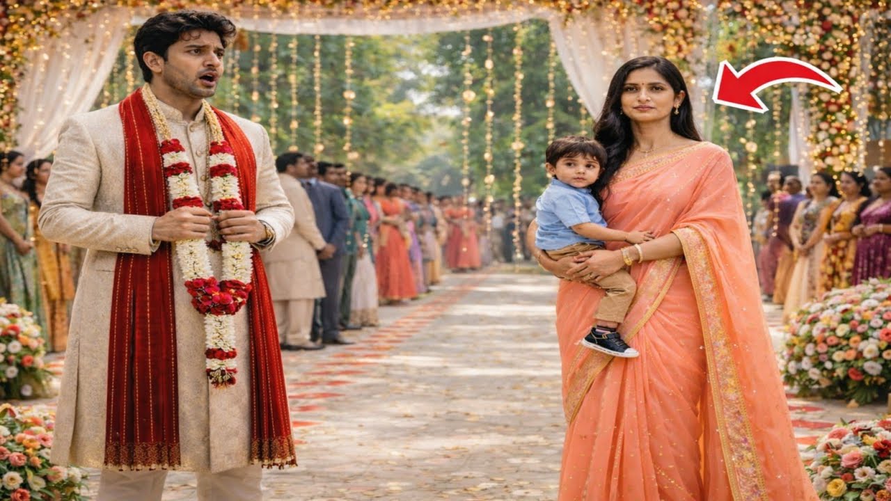 उसके गोद में एक छोटा सा बच्चा था, जिसकी आंखें हूबहू अमन जैसी थीं। मंडप में सन्नाटा छा गया। पंडित के मंत्र रुक गए। लोग फुसफुसाने लगे, “यह तो अमन की पहली पत्नी है! गोद में बच्चा किसका है?”