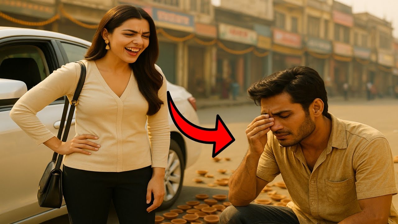 सान्या गुस्से में कार से उतरी, “अंधे हो क्या? जानते हो मेरी कार के एक पार्ट की कीमत तुम्हारे पूरे साल की कमाई से ज्यादा है।” लड़का कांपते हुए बोला, “मैडम, गलती हो गई। माफ कर दीजिए, मैं गरीब हूं।” सान्या ने हंसते हुए कहा, “अब पैसे नहीं हैं तो भीख मांग लो, वरना पुलिस बुलाऊंगी।” लड़का चुप रहा, उसकी आंखों में आंसू थे।