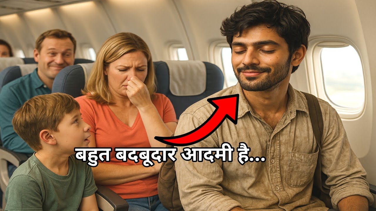 एयर होस्टेस ने हंसी छिपाते हुए कहा, “सर, प्लीज साफ-सुथरा रहने की कोशिश करें। यह फ्लाइट है, लोकल बस नहीं।”
