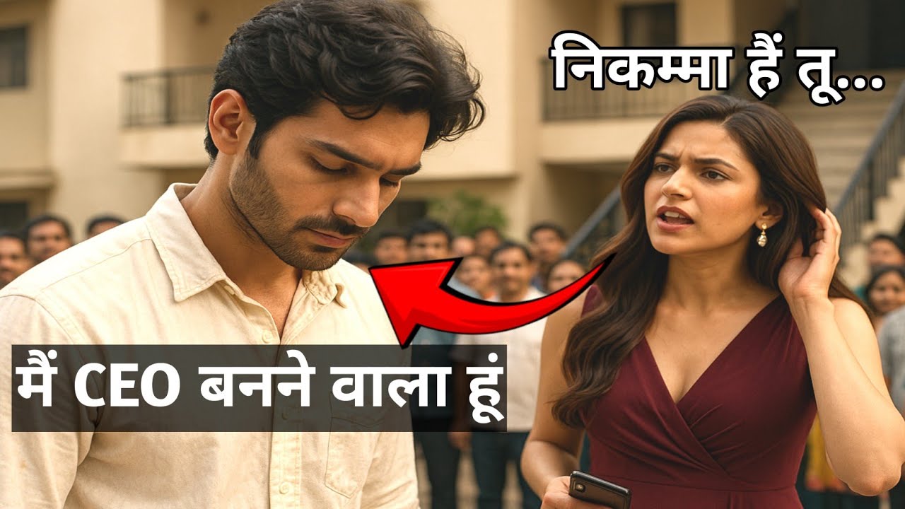 तभी अपार्टमेंट की सीढ़ियों से रिया नीचे उतरी – खुले बाल, महंगा गाउन, हाथ में फोन और चेहरे पर गुस्सा। वह सीधे आर्यन के सामने आई और बोली, “कितनी बार कहा है तुमसे? मुझे इस हालत में बाहर मत बुलाया करो। तेरे फटे जूते और पुरानी शर्ट देखकर लोग मुझ पर हंसते हैं।”