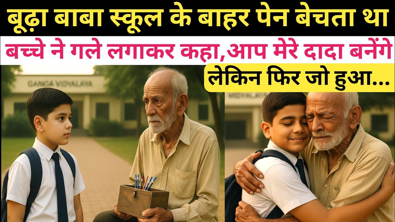 बूढ़ा बाबा स्कूल के बाहर पेन बेचता था… बच्चे ने गले लगाकर कहा—आप मेरे दादा बनेंगे, लेकिन फिर जो हुआ