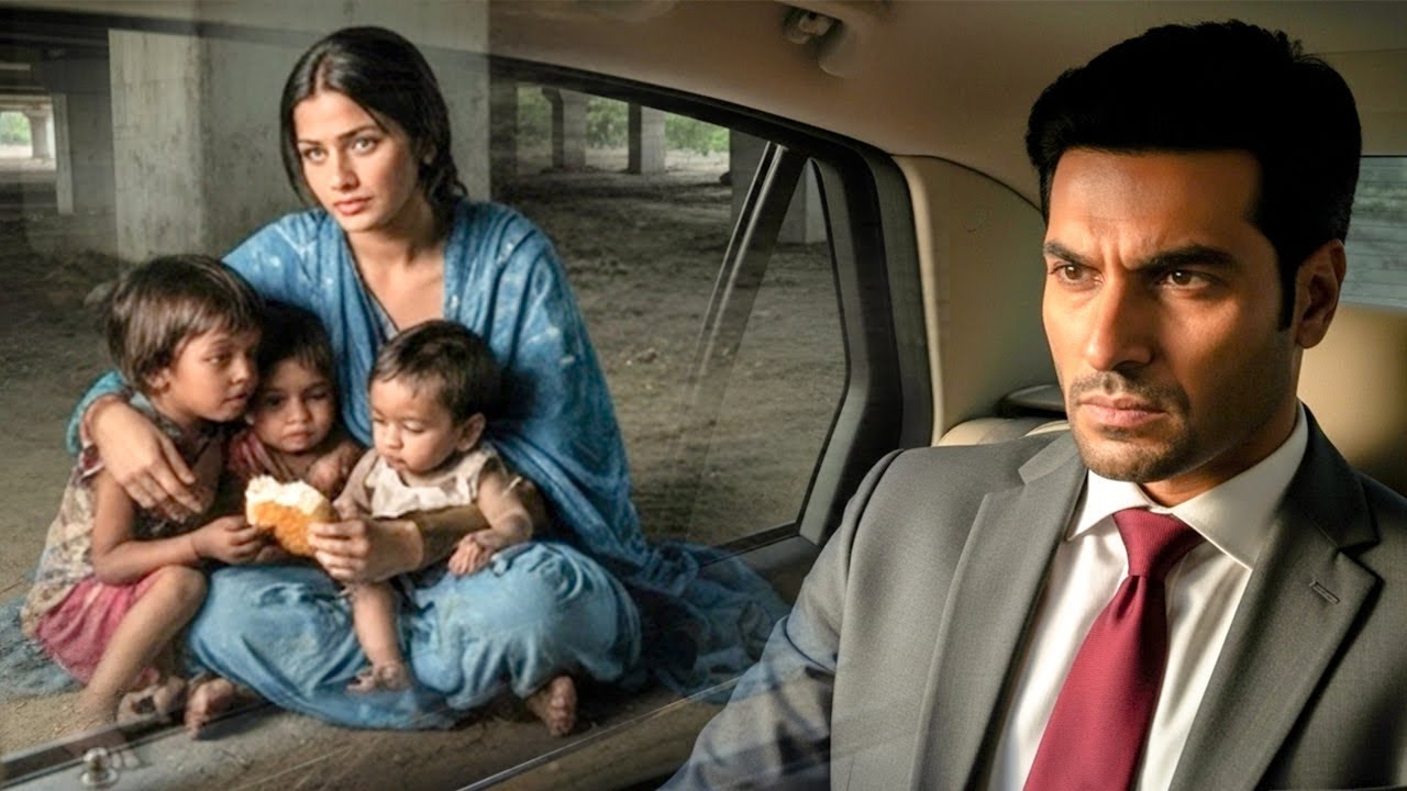 एक दिन भरी दोपहर में, जब ट्रैफिक अपनी पूरी रफ्तार से दौड़ रहा था, शहर के बड़े उद्योगपति विक्रम सिंह अपनी चमचमाती कार में बैठा था। उसकी दुनिया कांच की दीवारों के पीछे थी, जहां बाहर की गरीबी और लाचारी का शोर नहीं पहुंचता था। तभी उसकी नजर फ्लाईओवर के नीचे बैठी राधा और उसके बच्चों पर पड़ी। उनके मैले-कुचैले कपड़े और सूखी रोटियां खाते देख विक्रम के चेहरे पर घृणा का भाव आया। उसने अपने ड्राइवर से कहा, “देखो, कैसे ये लोग बच्चों को ढाल बनाकर भीख मांगते हैं। देश की सारी गंदगी इन्हीं लोगों की वजह से है।”