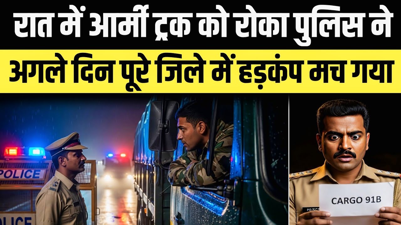 नमस्कार दोस्तों। आज की कहानी सिर्फ एक ट्रक रुकने की नहीं, बल्कि सिस्टम, वर्दी और इज्जत के टकराव की है। यह कहानी है उस रात की जब एक छोटी सी चिंगारी अगले ही दिन पूरे जिले में तूफान बनकर फूटी। अगर आपके रगों में वही खून दौड़ता है जो सरहद पर तैनात हमारे वीर जवानों का है, तो यह कहानी आपके दिल को जरूर छू जाएगी।