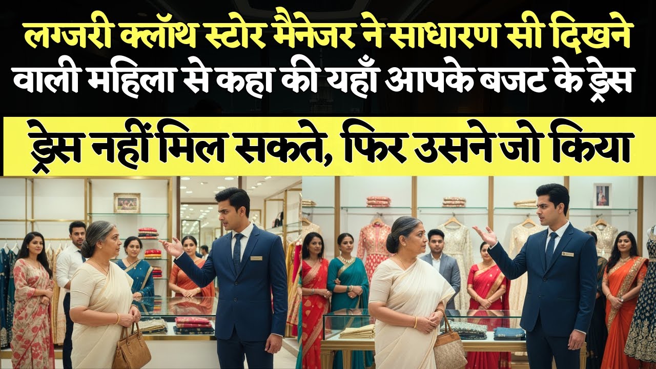 लग्जरी क्लॉथ स्टोर मैनेजर ने साधारण सी दिखने वाली महिला से कहा की यहाँ आपके बजट के ड्रेस नहीं मिल