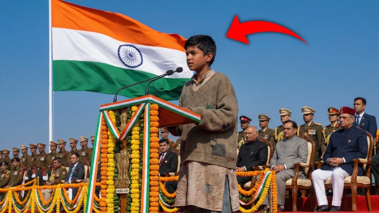 “मैं आज आपसे गणतंत्र के बारे में बात करने आया हूँ। मैंने इसे किताबों में नहीं पढ़ा, मैंने इसे सड़कों पर जिया है। मेरी दादी कहती हैं कि हमारा देश आज़ाद है, लेकिन जब हमारी झुग्गी तोड़ी जाती है और हम रोते हैं, तो कोई हमें सुनता नहीं। क्या वह आज़ादी सिर्फ बड़े घरों के लिए है?”