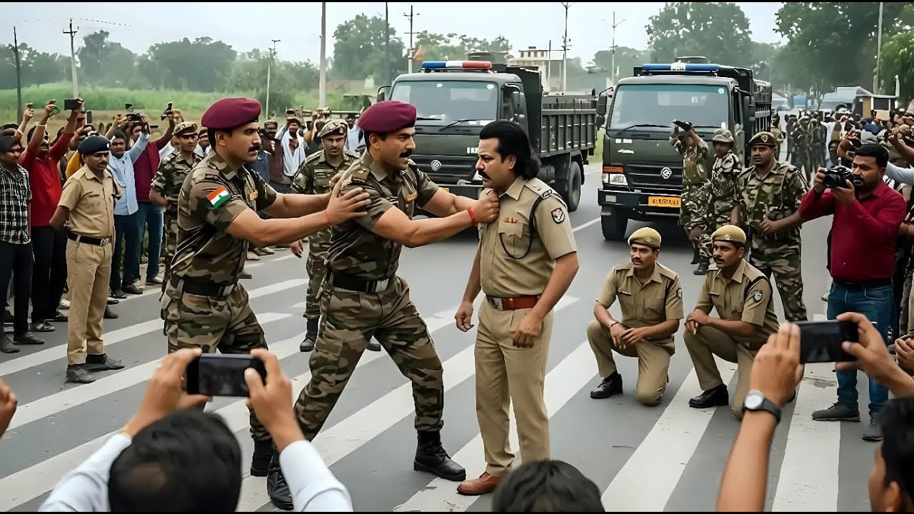 शमशेर सिंह के ‘चूड़ियां पहनने’ वाले कमेंट ने जवानों के सब्र का बांध तोड़ दिया। ट्रकों से जवान नीचे उतर आए। माहौल तनावपूर्ण हो गया। एक जवान ने अपनी राइफल तानते हुए कहा, “मेजर साहब, अगर यह दरोगा आपसे नहीं संभलता, तो हमें बताइए। हम इसका वो हाल करेंगे कि यह खुद को पहचान नहीं पाएगा।”