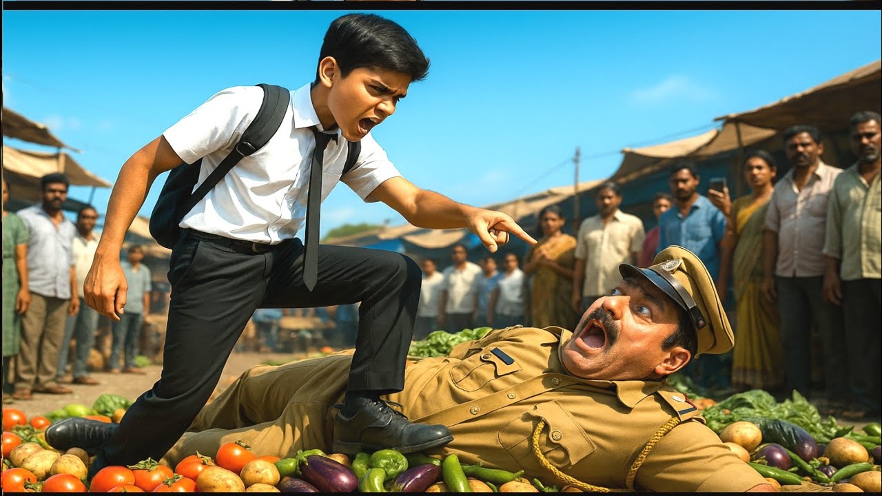 दोनों फिर बाजार पहुँचे। सीमा छुपकर मोबाइल से हर मंजर रिकॉर्ड करने लगी। कुछ देर में वही पुलिसवाला आया, रोहन ने हिम्मत करके कहा, “साहब जी, सब्जी मैं तभी दूंगा जब आप पैसे देंगे।” पुलिसवाले ने गुस्से में फिर थप्पड़ मारा, सब्जियां सड़क पर बिखेर दीं। सीमा ने एक लड़के को मोबाइल देकर कहा, “सब रिकॉर्ड करो।” फिर वह खुद आगे बढ़ी, पुलिसवाले ने उसे भी थप्पड़ मार दिया।