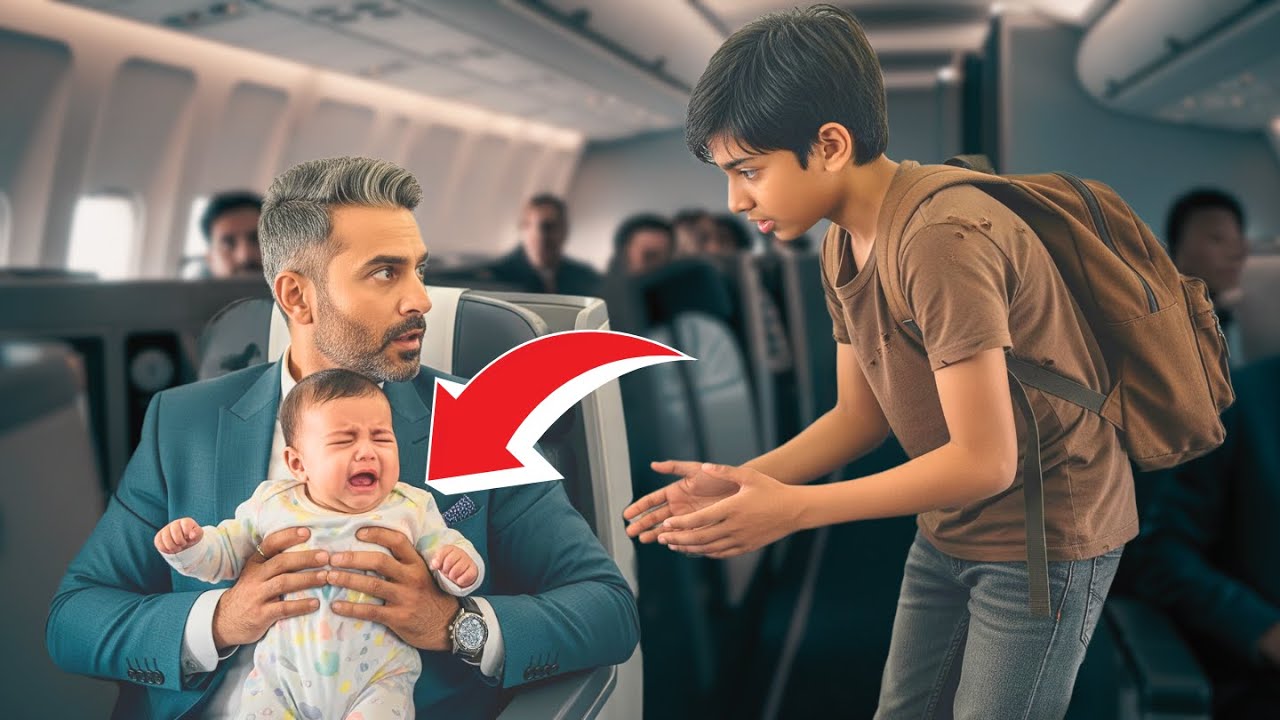 Flight में अरबपति की बच्ची रो रही थी, फिर गरीब लड़के ने जो किया – देखकर सब हैरान रह गए।