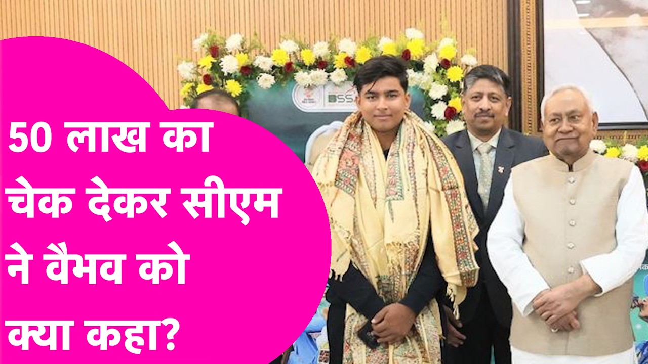 बिहार के लाल वैभव सूर्यवंशी पर हुई धनवर्षा: CM नीतीश ने 50 लाख का चेक देकर थपथपाई पीठ, कहा- ‘देश का नाम रोशन करें’
