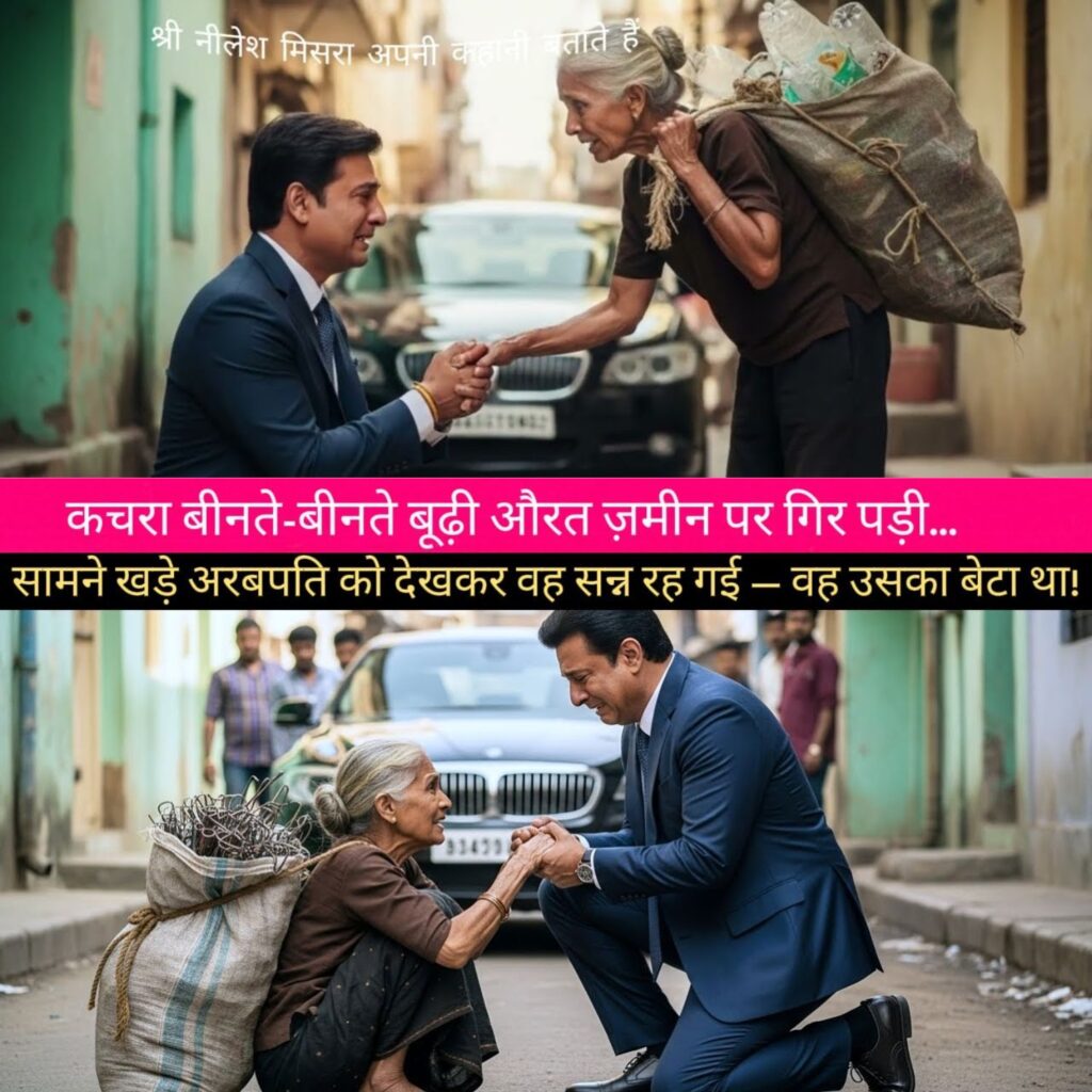 कबाड़ बीनती बुढ़िया गिर पड़ी – यह चीज़ देखकर समझ गई कि सामने खड़ा अरबपति उसका बेटा है।