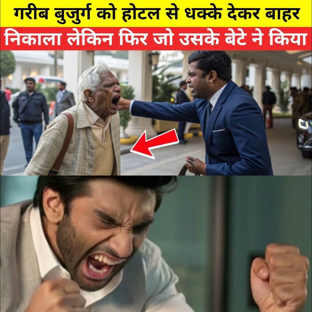 “गरीब बुजुर्ग को होटल से धक्के देकर निकाला गया, लेकिन फिर जो उसके बेटे ने किया उसने सबको हैरान और भावुक कर दिया!”