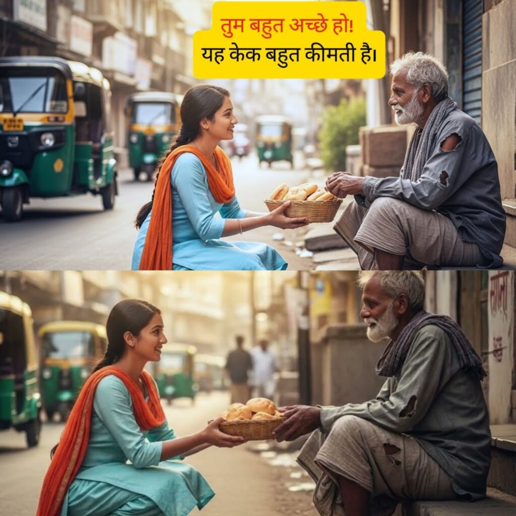 एक दिन ढाबे के बाहर एक बूढ़ा भिखारी श्री शर्मा बैठा था। सब उसे दुत्कार रहे थे, लेकिन प्रिया ने बचा हुआ खाना चुपके से उसे दे दिया। लोगों ने फिर उसका मज़ाक उड़ाया, लेकिन प्रिया ने परवाह नहीं की।