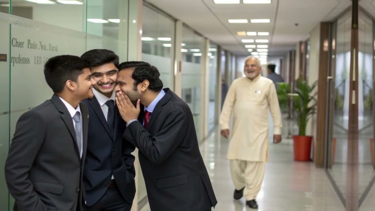 अगली सुबह ऑफिस में वही भागदौड़, वही घमंड। लेकिन अचानक कई काले एसयूवी गाड़ियाँ कंपनी के गेट पर रुकीं। मीडिया के कैमरे चमकने लगे। सारे कर्मचारी हड़बड़ा गए। दरवाजा खुला – सबसे पहले बाहर आए देश के जानेमाने उद्योगपति, और उनके पीछे वही बुजुर्ग – हर प्रसाद, लेकिन आज साफ-सुथरे कपड़े, चमकते जूते, आँखों में सख्ती।