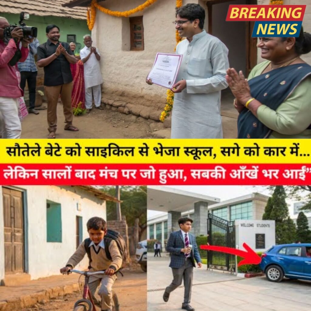 “जिसे सौतेला कहकर साइकिल पर भेजा, वही सालों बाद मंच पर छा गया—बदल गई किस्मत, भर आईं सबकी आंखें!”
