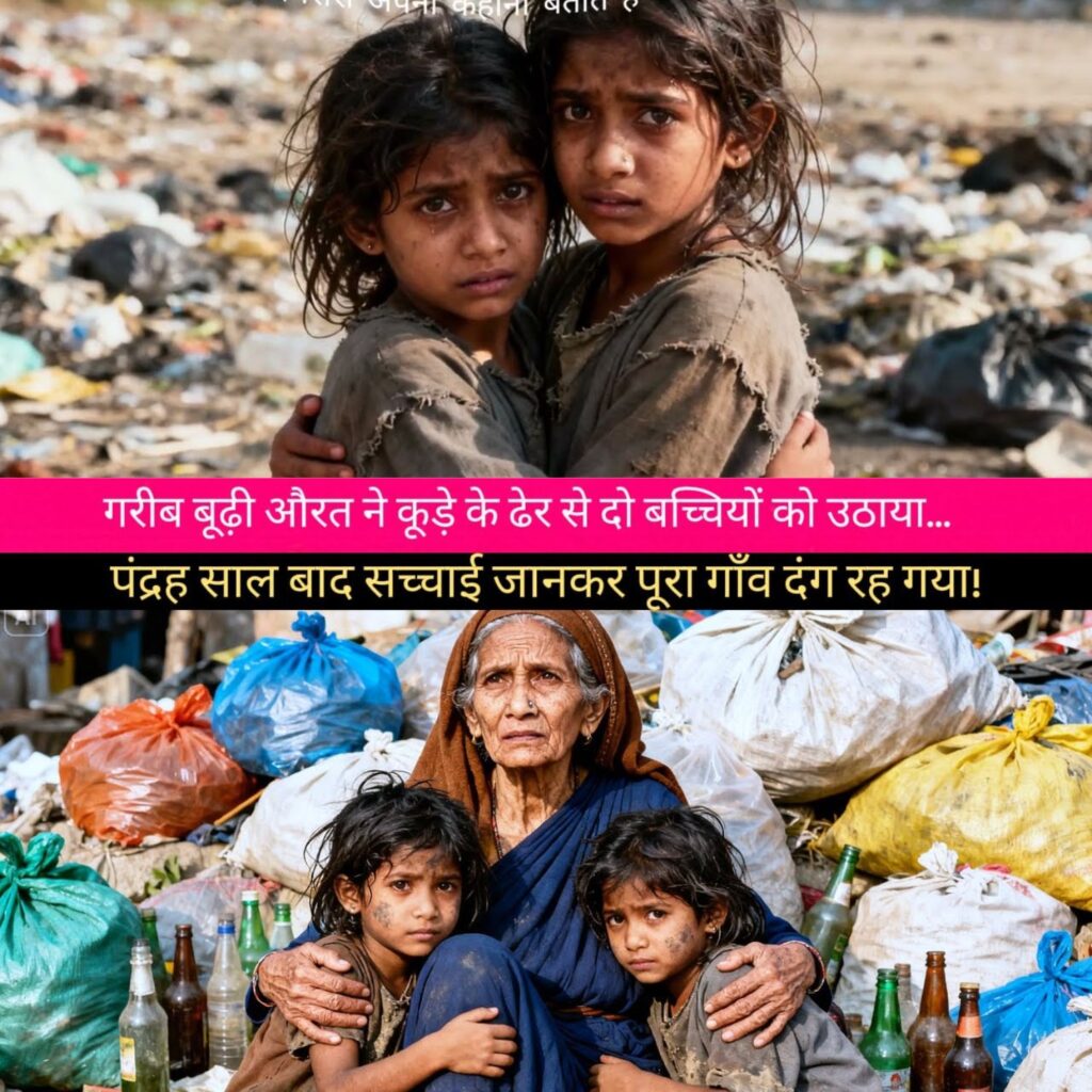 बेघर बूढ़ी औरत ने कचरे से दो बच्चियों को उठाकर पाला – 15 साल बाद पूरे गाँव को झटका लगा