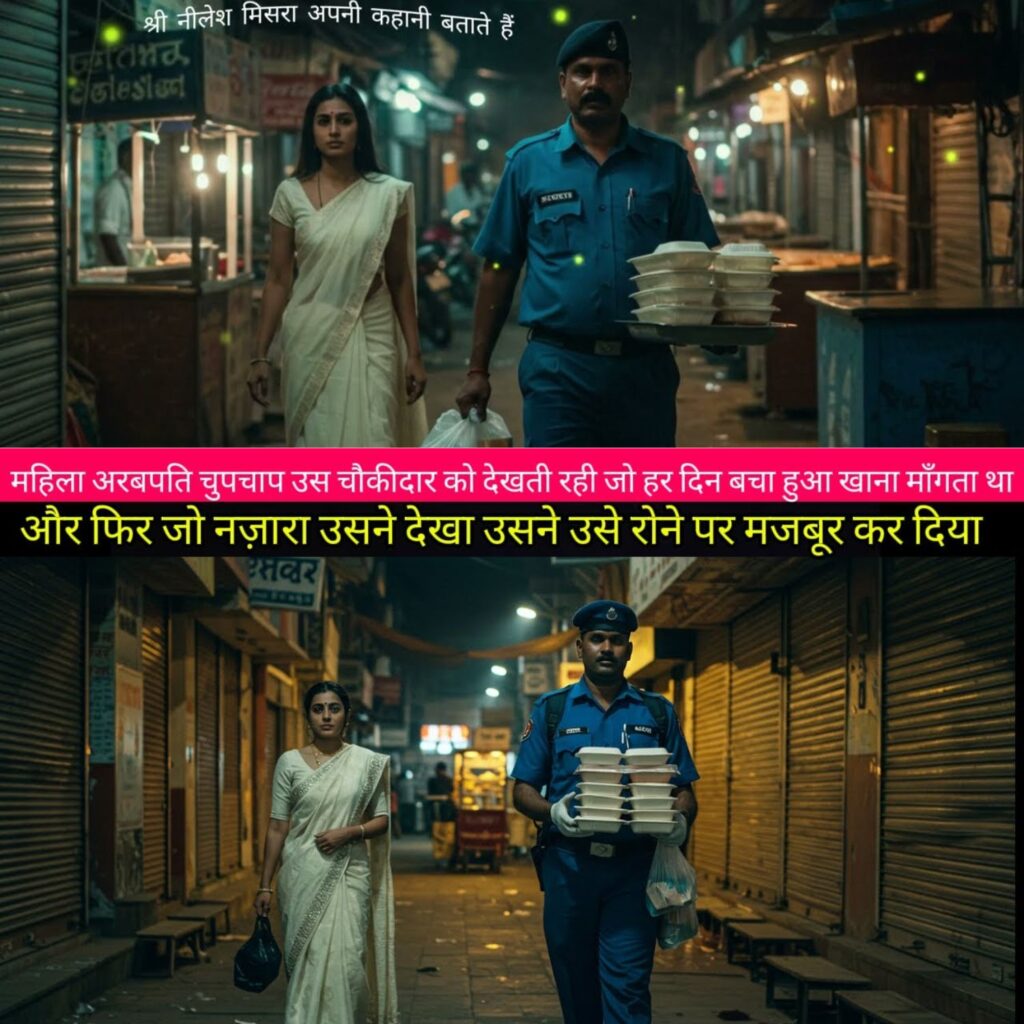 हर रोज़ चौकीदार बचा हुआ खाना ले जाता था — एक दिन महिला अरबपति ने पीछा किया और सच जानकर दंग रह गई…