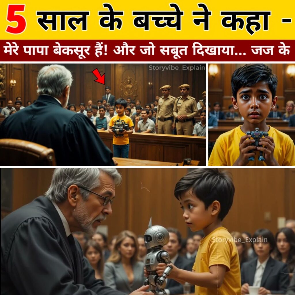 लेकिन तभी, कोर्ट में एक 5 साल का बच्चा अर्जुन, अपने हाथ में एक पुराना खिलौना रोबोट लेकर आया। उसकी मासूम आवाज में दर्द और आंखों में आंसू थे। उसने जज साहब से कहा, “मेरे पापा बेकसूर हैं। यह रोबोट अंकल मल्होत्रा का है। उन्होंने मुझे दिया था। इसमें कैमरा है।”