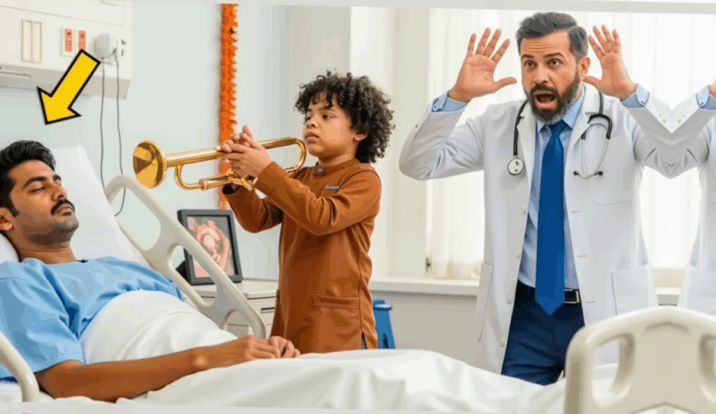 लड़का अभी भी बिस्तर पर बैठा पूरे दिल से ट्रॉम्बोन बजा रहा था। उसकी छोटी उंगलियां थक चुकी थीं, लेकिन वह रुकना नहीं चाहता था। हर सुर कमरे की हवा को बदल रहा था और अरबपति की सांसें गहरी होने लगी। अचानक अरबपति ने अपनी गर्दन थोड़ी सी मोड़ी और फटी-फटी आवाज में बोला, “यह आवाज किसकी है?”