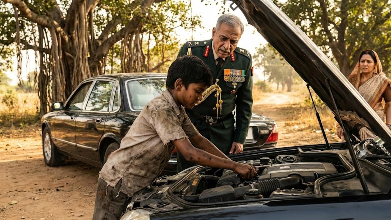 एक दिन जनरल विक्रम सिंह और उनकी पत्नी प्रिया एक सैन्य कार्यक्रम के लिए जा रहे थे, लेकिन रास्ते में उनकी कार खराब हो गई। यह रास्ता सुनसान था, और वहां कोई भी मदद करने वाला नहीं था। तभी एक लड़का राजू, जो पुराने कपड़ों में था, उनके पास आया और कार की मरम्मत करने की पेशकश की। शुरुआत में जनरल विक्रम को शक हुआ, लेकिन जब राजू ने बिना किसी झिझक के कार की मरम्मत शुरू की, तो जनरल को हैरानी हुई। राजू की कड़ी मेहनत और तकनीकी ज्ञान ने उन्हें बहुत प्रभावित किया।