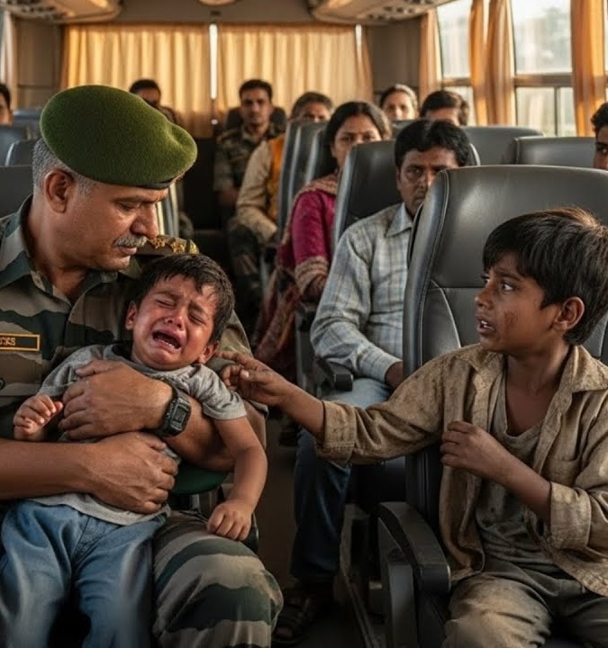 सूर्य की रोशनी मद्धम होने लगी थी, और रात की बस ने एक छोटे से गांव के बस टर्मिनल से धीरे-धीरे अपनी यात्रा शुरू की। जनरल विक्रम सिंह और उनकी पत्नी प्रिया साधारण नागरिक कपड़ों में बस की मध्य सीट पर बैठे थे, लेकिन उनके साथ बैठा उनका तीन साल का बेटा, रोहन, यात्रा के पहले घंटे से ही जोर-जोर से रो रहा था। प्रिया ने उसे शांत करने के लिए हर कोशिश की, पर बच्चा लगातार रोता रहा, जिससे यात्रा का माहौल और भी तनावपूर्ण हो गया।