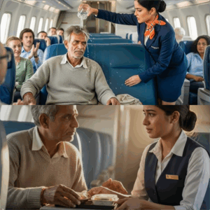 हरीश चुपचाप अपनी सीट पर आकर बैठ गए। उन्होंने देखा कि रीना कैसे अगले यात्री—जो एक चमकदार सूट पहने हुए था—से झुक-झुककर बात कर रही थी। “सर, क्या आप शैंपेन लेना पसंद करेंगे?”