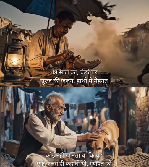 लेकिन असल में शेरा एक अलग कहानी का हिस्सा था। गणपत को पता था कि शेरा जानबूझकर हर घर में घुसता और सबसे फटा हुआ जूता उठाकर लाता था। गणपत कभी-कभी शेरा को गले लगाकर कहता, “बेटा, तू मेरी किस्मत है। तूने कभी मुझे अकेला नहीं महसूस होने दिया।” शेरा उसकी बात सुनकर खुशी से उसकी आंखों को चाटता।