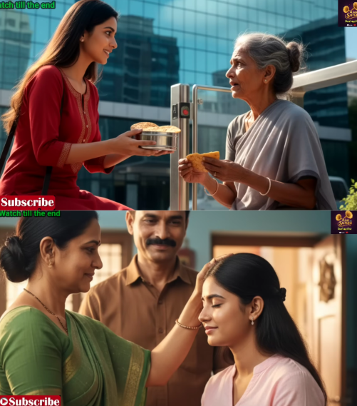 बूढ़ी औरत ने ऊपर देखा। उसकी आंखों में हैरानी थी। उसने धीरे से कहा, “बेटी, तुम्हें भूख लगेगी। तुम रख लो।” प्रिया मुस्कुराई और बोली, “नहीं आंटी, मैं मैनेज कर लूंगी। आप खा लीजिए, प्लीज।” बूढ़ी औरत की आंखें भर आईं। उसने डिब्बा लिया और धीरे से बोली, “बेटी, भगवान तुम्हारा भला करे। तुम बहुत अच्छी हो।” प्रिया ने सिर्फ मुस्कुरा कर नमस्ते किया और अंदर चली गई।