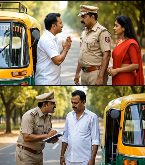 जैसे ही ऑटो उनके सामने पहुंचा, इंस्पेक्टर दिलीप राणा ने लाठी से इशारा करके ऑटो को रोक दिया। फिर इंस्पेक्टर दिलीप गुस्से में बोला, “अरे ओ पायलट, नीचे उतर। तेरे बाप की सड़क है क्या? इतनी तेज स्पीड में ऑटो चला रहा है। कानून का कोई डर नहीं है क्या? चल अब जल्दी से 5000 का चालान भर।” इतना कहकर इंस्पेक्टर ने चालान बुक निकाल ली।