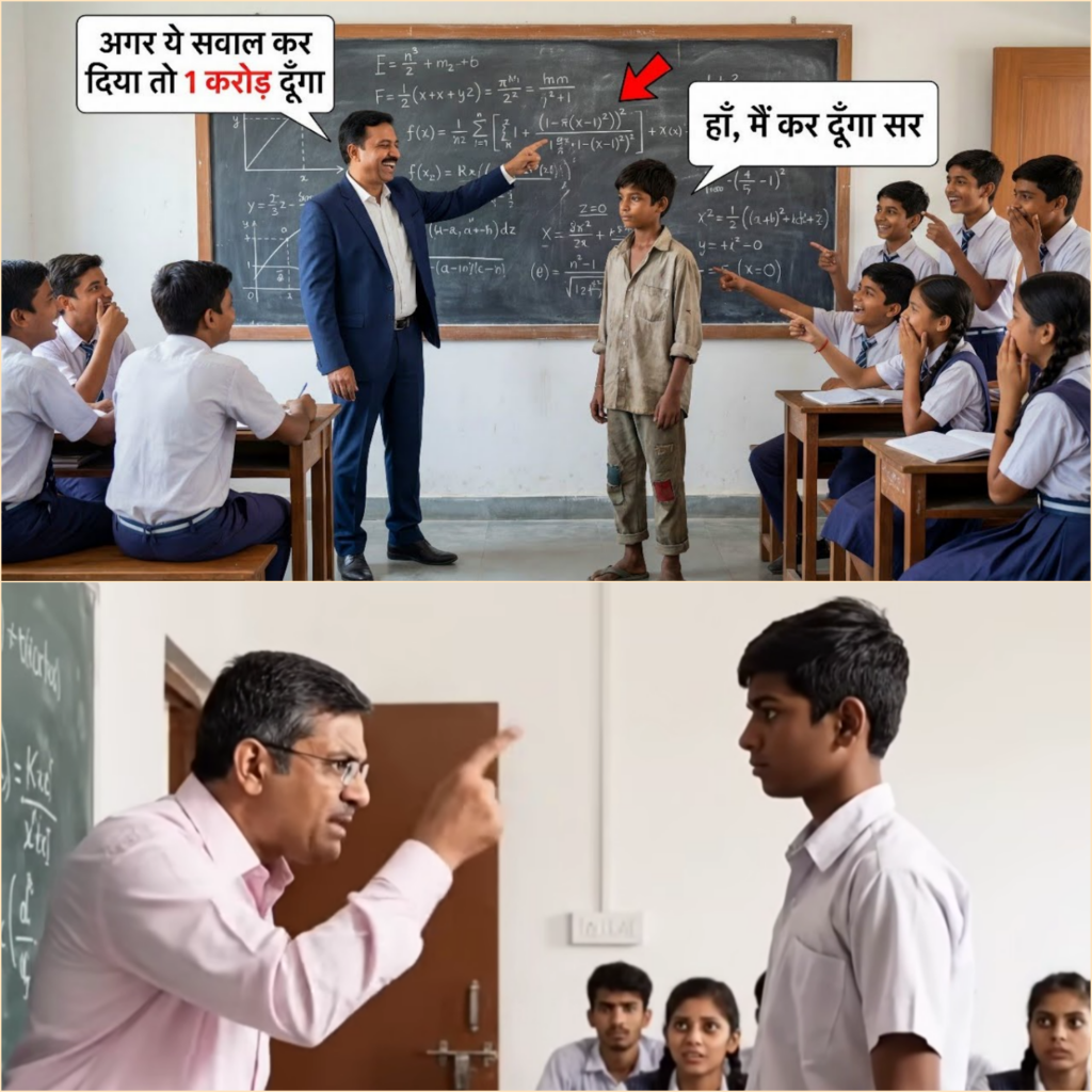 क्लास में सन्नाटा छा गया। किसी ने हाथ नहीं उठाया। प्रोफेसर शर्मा मुस्कुराए और कहा, “मुझे पता था तुम लोग नहीं कर सकते।” फिर उन्होंने बड़े आत्मविश्वास से कहा, “मैं खुद इसे सॉल्व करके दिखाता हूं।” वह चौक लेकर बोर्ड की तरफ बढ़ने ही वाले थे कि तभी आखिरी बेंच से एक हाथ उठा।