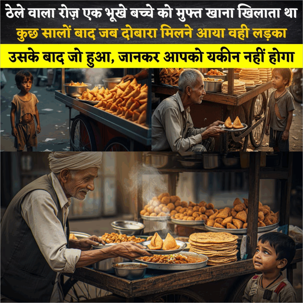 यह कहानी सिर्फ एक ठेले वाले और एक बच्चे की नहीं है, यह कहानी हम सबकी है। एक छोटा सा नेक काम किसी की पूरी जिंदगी बदल सकता है। इसलिए अगर मौका मिले तो किसी भूखे को खाना खिलाना मत भूलना। क्योंकि वही भूखा बच्चा कल का सबसे बड़ा इंसान बन सकता है। यही जिंदगी का सच है।