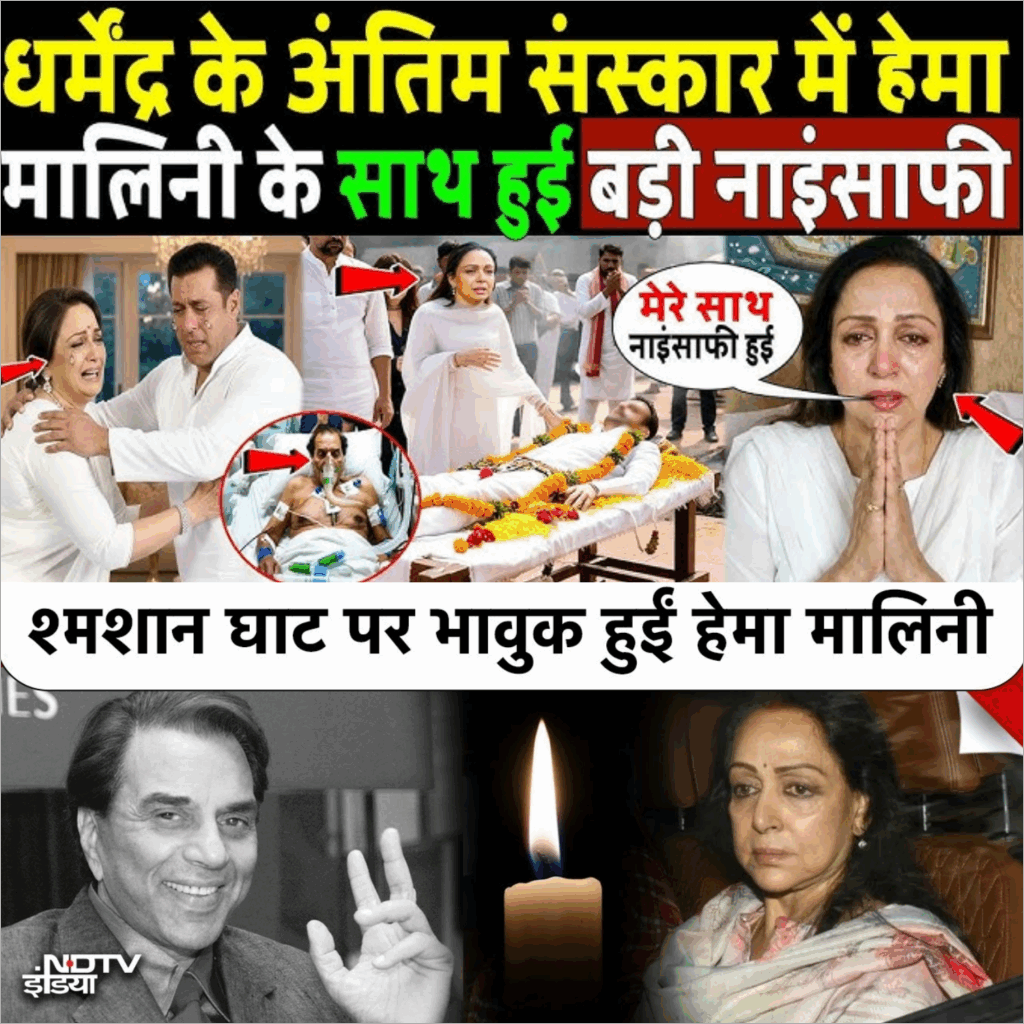 धर्मेंद्र जी का निधन भारतीय सिनेमा के लिए एक अपूरणीय क्षति है। 89 साल की उम्र में उन्होंने अंतिम सांस ली, और उनके जाने के बाद पूरे फिल्म इंडस्ट्री में शोक की लहर दौड़ गई। इस दुखद घटना के बीच, एक ऐसा पल आया जिसने सबको हिला दिया। वह पल था जब उनकी दूसरी पत्नी हेमा मालिनी को अंतिम संस्कार के दौरान एक बड़ी नाइंसाफी का सामना करना पड़ा। इस लेख में हम विस्तार से जानेंगे कि कैसे धर्मेंद्र जी की पहली पत्नी प्रकाश कौर के परिवार ने इस अवसर पर हेमा को किनारे कर दिया, और इसके पीछे के कारण क्या थे।