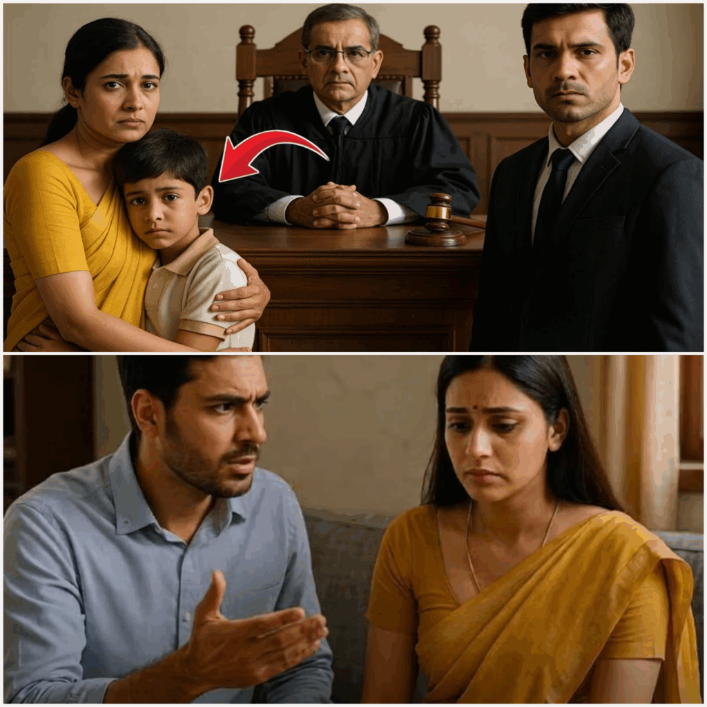 कोर्ट में सन्नाटा छा गया। लोग प्रिया की ओर देखने लगे। पीछे बैठा छोटा अयान मासूमियत से सब देख रहा था। उसने धीरे से मां की साड़ी खींची और पूछा, “मां, यह अंकल कौन हैं? यह क्यों कह रहे हैं कि मैं आपके पास नहीं रह सकता?”