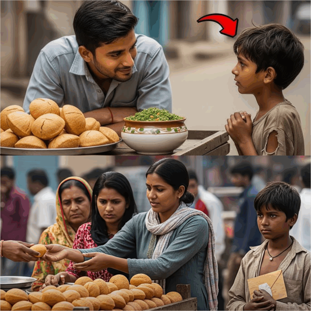 रामपाल का दिल पिघल गया। उसने तुरंत कढ़ाई से दो गरमागरम कचौड़ियाँ निकालीं और मुस्कुराते हुए कहा, “खा ले बेटा, आज तू मेरा मेहमान है।” बच्चे की आंखों में खुशी की चमक लौट आई। उसने कचौड़ियाँ थाम लीं और खुशी से कहा, “भैया, भगवान आपको बहुत खुशियाँ दे।”