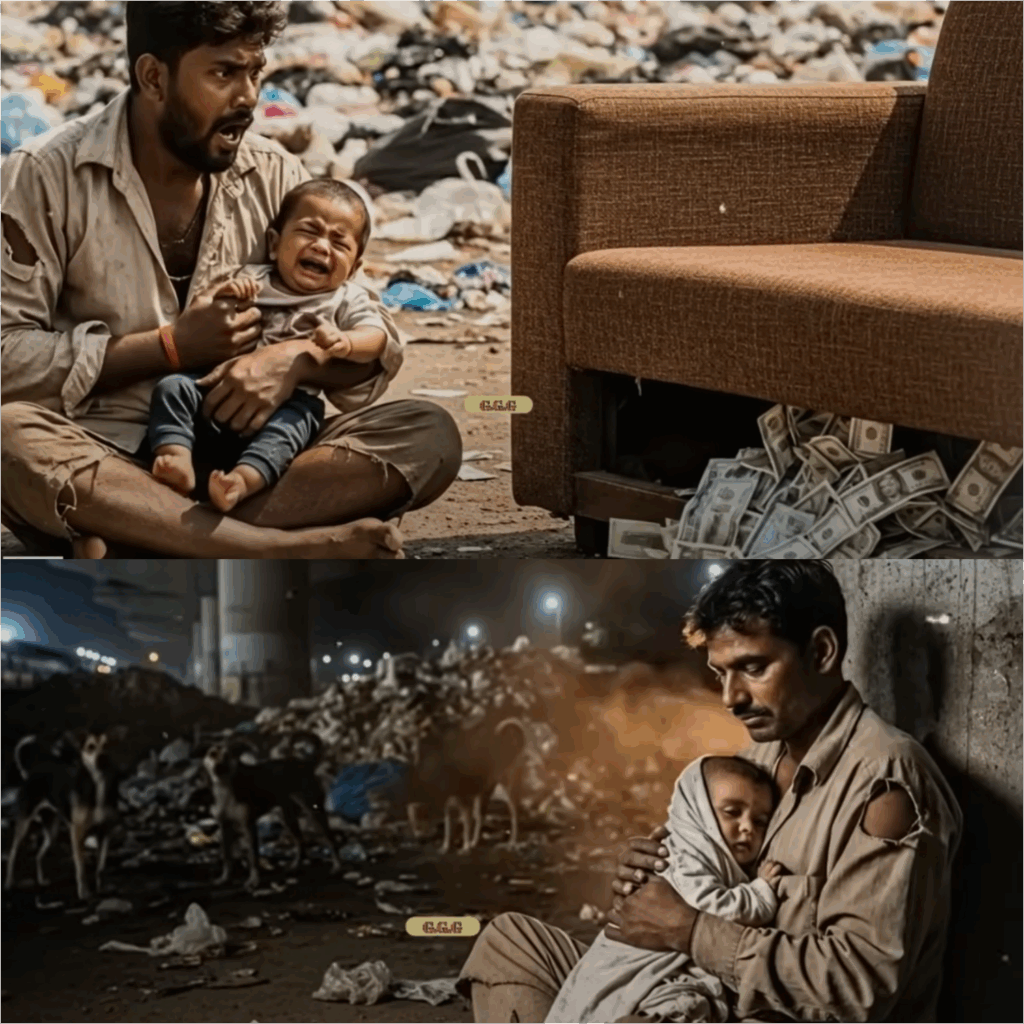 शहर की एक गंदी कचरा ढेरी पर एक गरीब मजदूर, रामू यादव, अपनी नन्ही बेटी सविता को सीने से बांधे भटक रहा था। दिनभर भूख और अपमान सहने के बाद अचानक उसकी नजर एक पुराने सोफे पर पड़ी। सोफा ऊपर से साधारण लग रहा था, लेकिन रामू के मन में ख्याल आया कि शायद इसे बेचकर वह अपनी बच्ची के लिए दूध खरीद सके। उसने सोफे को उठाया और अपने टूटे-फूटे झोपड़े में ले आया।