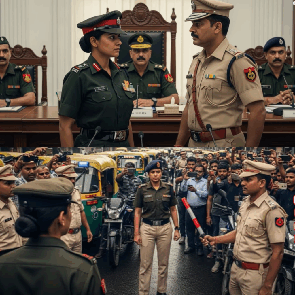 अर्जुन ने अपनी सिग्नल स्टिक उठाई और काफिले को रुकने का इशारा किया। काफिला धीमा हुआ और काली गाड़ी रुकी। लोगों की नजरें इस दृश्य पर टिक गईं। क्या ट्रैफिक पुलिस ने सचमुच सेना को रोका? गाड़ी का दरवाजा खुला और ब्रिगेडियर अनन्या राव बाहर आईं। उनकी आंखों में सख्ती थी, और उन्होंने अर्जुन की ओर देखा। अर्जुन ने सलामी देते हुए कहा, “महोदया, आपका काफिला बिना संकेत के भीड़भाड़ वाले क्षेत्र से गुजर रहा है। कृपया आवश्यक दस्तावेज दिखाएं।”