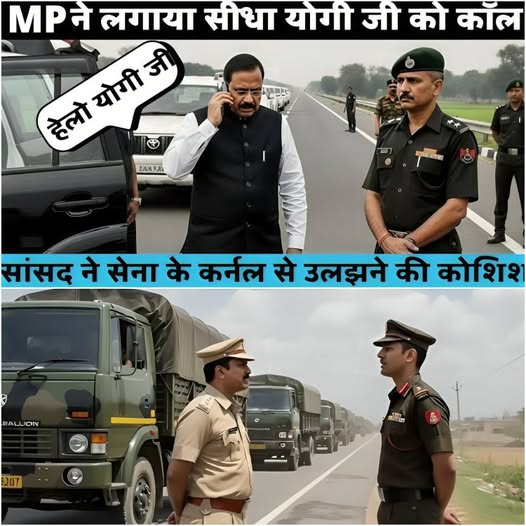 सांसद ने अपनी जेब से फोन निकाला—“अब देखते हैं सिस्टम किसके साथ है। योगी जी को मिलाइए।” फोन की घंटी बजती रही। हाईवे पर धूप जल रही थी, समय निकल रहा था। फोन के उस पार आवाज आई—“हां, बोलिए।” “योगी जी, यहां हाईवे पर आर्मी कॉन्वॉय रास्ता रोक रहा है। वीआईपी मूवमेंट है।” कुछ सेकंड की खामोशी।