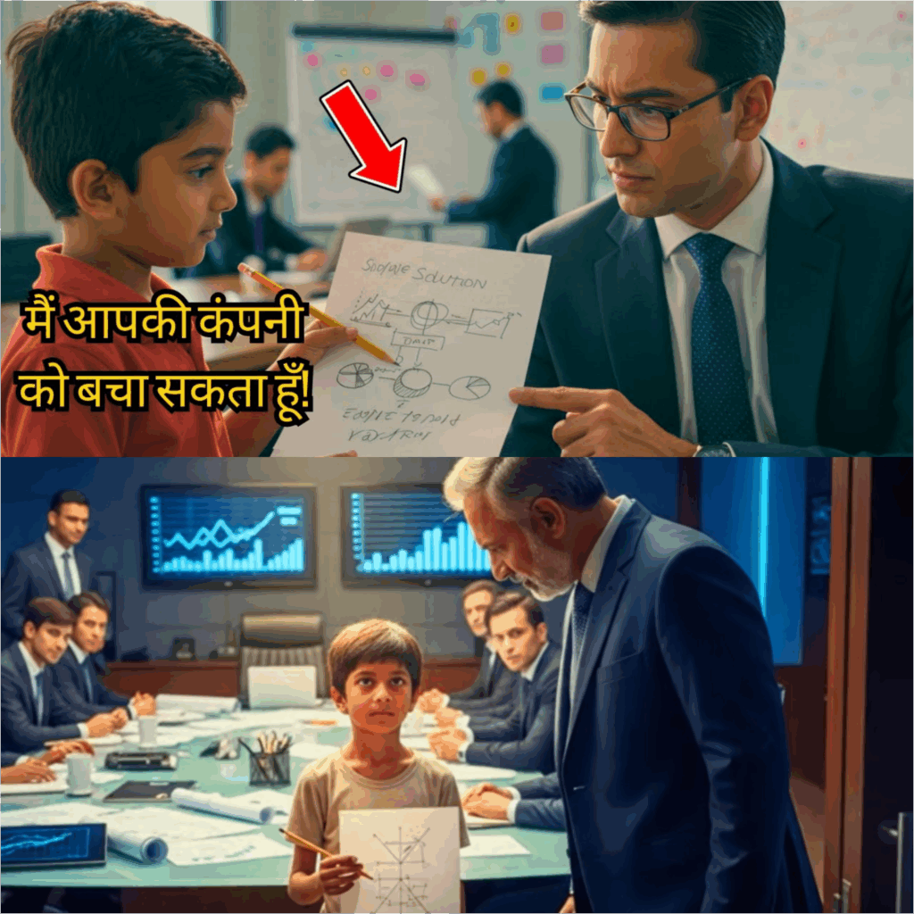 तभी आरव घर आया। उसके हाथ में घिसी हुई पेंसिल और एक नोटबुक थी। राजीव ने उससे पूछा—क्या तुम बिजली की समस्या का समाधान जानते हो? आरव ने अपनी नोटबुक खोली, उसमें सरल लेकिन प्रतिभाशाली डिजाइन थे, जो होटल की समस्या का हल थे। राजीव हैरान थे—एक गरीब बच्चा कैसे इतनी समझ रखता है?