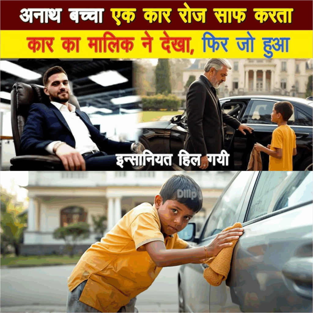 एक छोटा बच्चा, उम्र लगभग 10 साल, मैले कपड़े, घिसी हुई चप्पलें, और हाथ में एक पुराना गीला कपड़ा लिए कार को बेहद प्यार से साफ कर रहा था। संजीव कुछ पल खामोशी से खड़े रहे, फिर पास जाकर पूछा, “बेटा, तुम मेरी गाड़ी रोज़ साफ करते हो?” बच्चा थोड़ा घबराया, फिर बोला, “जी साहब।”