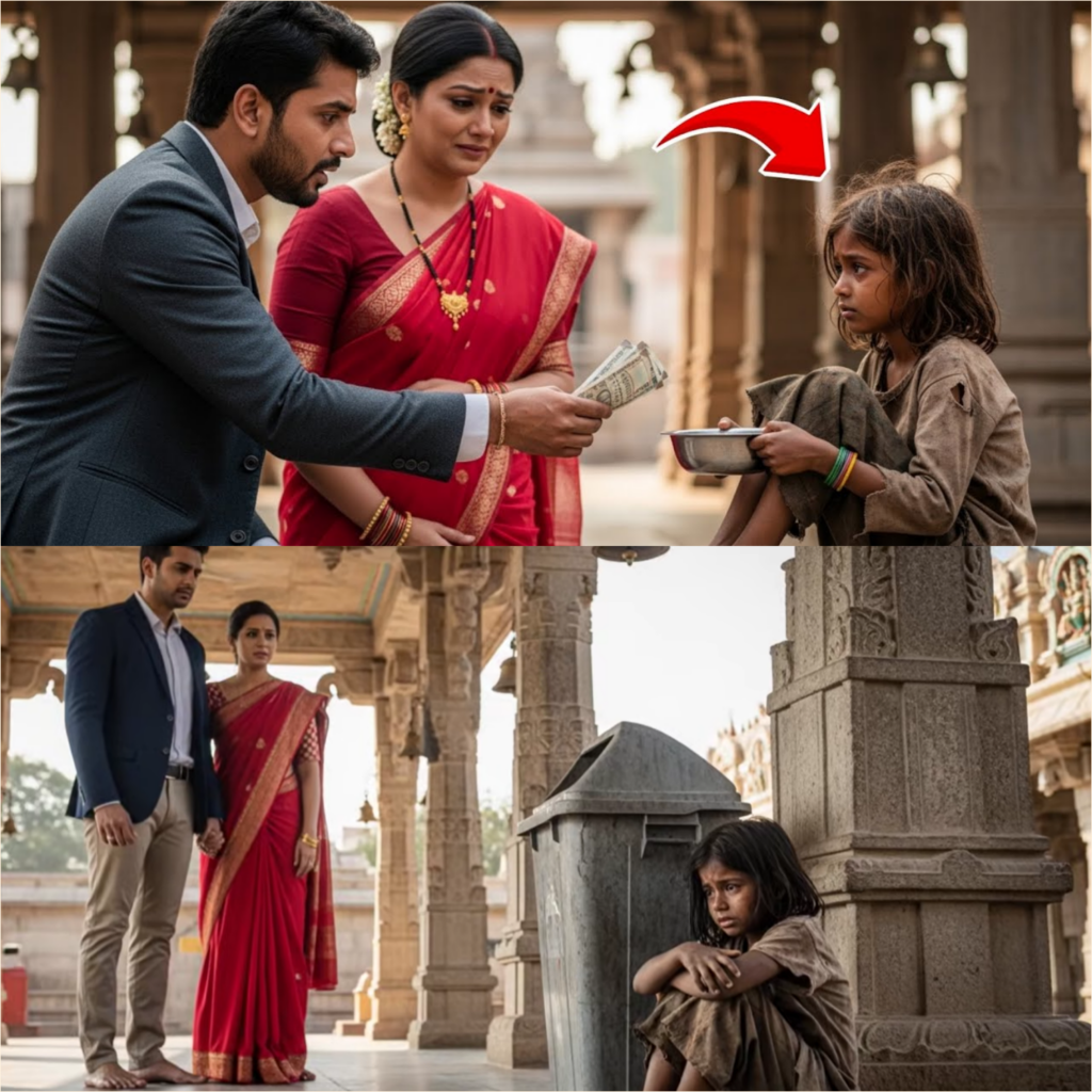 8 साल की लड़की मंदिर के आंगन में भीख मांगती हुई मिली करोड़पति आदमी और उसकी पत्नी ने जो किया
