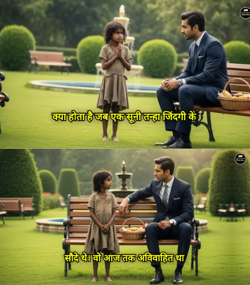 उसने कुछ नहीं कहा। वह उठा, उस बच्ची का छोटा सा मैला हाथ अपने हाथ में लिया और उसे अपने साथ बेंच पर बिठाया। उसने अपनी पानी की बोतल से उसे पानी पिलाया और अपना बचा हुआ सैंडविच उसके हाथ में रख दिया। निशा किसी भूखे जानवर की तरह उस सैंडविच पर टूट पड़ी। राकेश बस चुपचाप उसे देखता रहा।