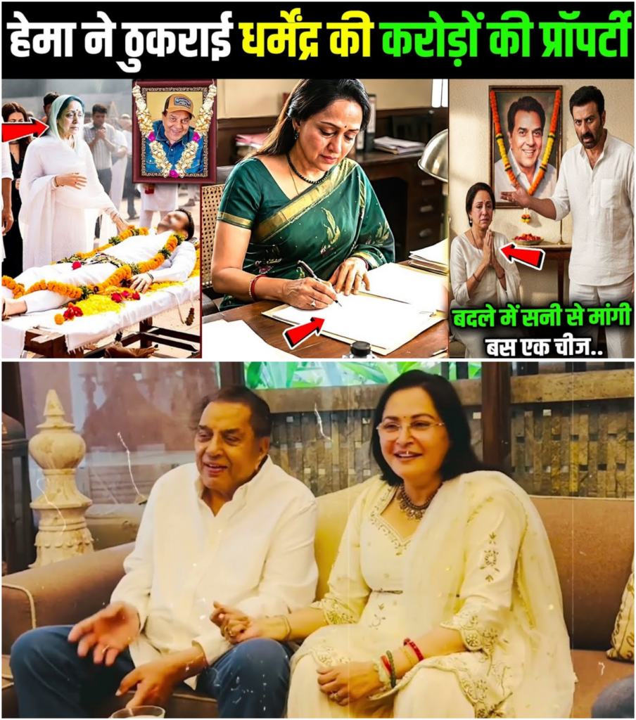 इसी हलचल में एक शख्स चुप बैठी थी – हेमा मालिनी। वह बस खामोश थीं। ना तकरार, ना मांग, ना कोई गिला। बस आंखों में एक शांति थी और होठों पर हल्की मुस्कान। जब वकीलों ने परिवार से पूछा, “हेमा जी, आपको क्या चाहिए धर्मेंद्र जी की विरासत में?” तो उन्होंने मुस्कुराकर कहा, “मुझे कुछ नहीं चाहिए। ना पैसा, ना प्रॉपर्टी, ना जायदाद। बस एक चीज चाहिए और वह सिर्फ सनी देओल दे सकता है।”